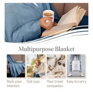 Designed to have the ideal weight, our breathable cotton throw blankets give you the warmth and comfort you deserve. With a generous size of 106 x 92 inches , our warm thermal bed blanket can be used by both adults and children alike. Its smooth feel and plush weight make it the ideal choice to wrap yourself up when relaxing, lounging, or reading.
