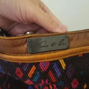 Nena & Co. Authentic Guatemala Satchel, Woven & Leather w/Dust Bag