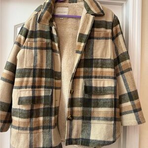 Cozy sherpa jacket with soft texture. Perfect for layering.