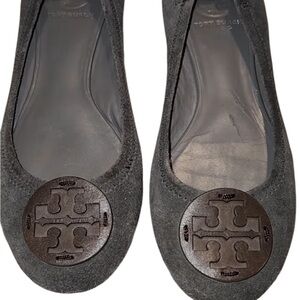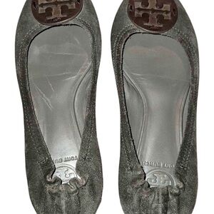 Chic and versatile Tory Burch Travel Ballet Flats in a timeless taupe leather and suede combo. Gently worn with minor insole wear (see pics), otherwise in excellent used condition. Foldable and perfect for travel, work, or everyday style.