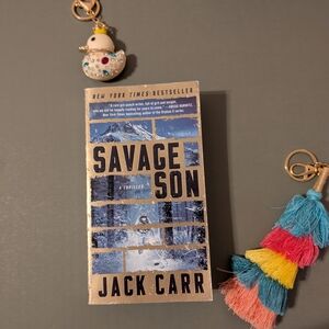 Savage Son by Jack Carr. Paperback edition. Features a striking blue and white cover design.