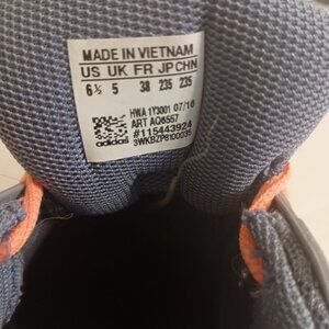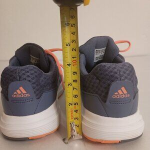 Adidas, Galaxy, running shoes, sneakers, blue shoes, orange laces, women’s size 6.5, athletic shoes, workout sneakers, running sneakers, training shoes, sporty style, breathable mesh, cushioned sole, gym shoes, casual wear, activewear, fitness shoes, comfortable sneakers, preowned Adidas, performance footwear