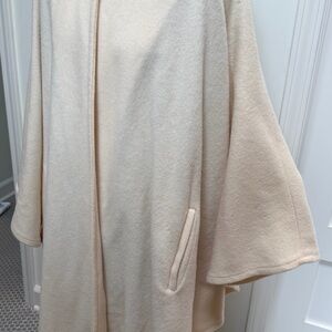 This cape is cream colored, 80% wool and 20% nylon. She is most likely from the 80s and looking for the fabulous person who loves to make an entrance and appreciates the finer things in life at a great price.