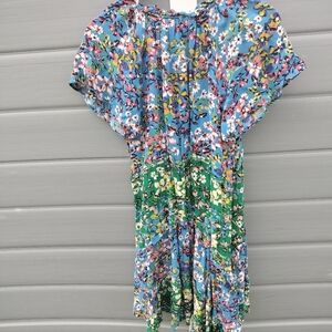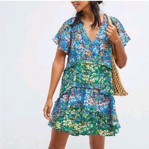 Anthropologie Robin Tiered Mini Dress Blue Green Floral XS