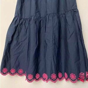 JCrew scalloped edge navy tiered dress with hot pink embroidery-size 2