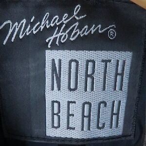STUNNING VINTAGE BLACK & GOLD SOFT LEATHER JACKET BY MICHAEL HOBAN NORTH BEACH LEATHER WOMENS SIZE 6 SHOULDER PADS (NOT THICK) LINED VINTAGE WITH TAGS NEVER WORN PURCHASED NEW IN EARLY 1990'S AT NEW YORK CITY BOUTIQUE STORE EXCELLENT VINTAGE CONDITION NO FLAWS