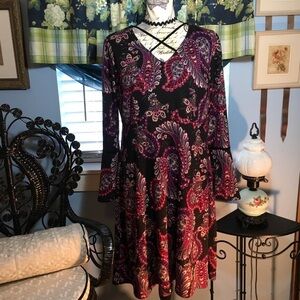 NorthStyle long sleeve v neck crisscross detail floral sweater dress