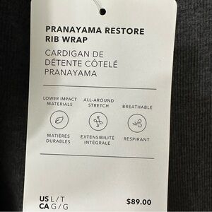 Athleta Pranayama Restore Rib Wrap Cardigan Sweater, Charcoal Gray, Size Large, NWT