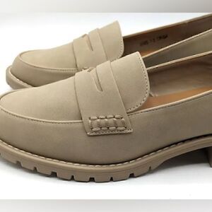 dv by Dolce Vita “Crisp” Classic Penny Loafer/Lug Sole Block Heel (Dune/Tan) NEW