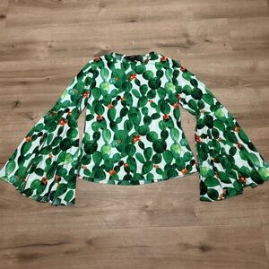 Woman’s bell-sleeved cactus print blouse, Size small but fits loose