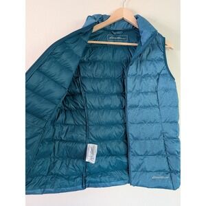 Eddie Bauer Women's Down Vest EB650 Teal Blue Puffer Hiking Outdoor Travel Sz L
