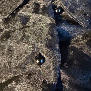 Beautiful black sheer top with polka dots. Stylish and versatile. Perfect for the holidays!
