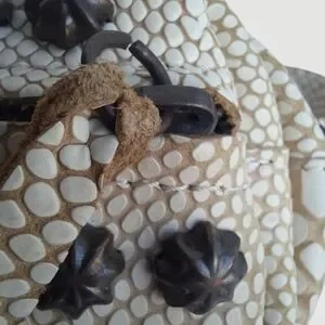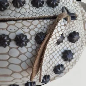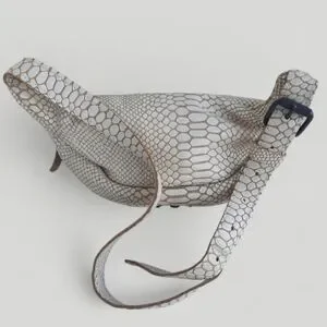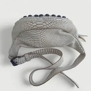Extremely rare Freebird by Steven Apollo bag. Made in Mexico. It gives Chrome Hearts vibes. Unique cobra skin effect achieved by placing a bone colored applique on top of supple, genuine cow leather. Paired with detailed antiqued silver studs. Features a front zip pocket and large zip main compartment. Adjustable strap allows to wear as a sling or waist bag. Such a well made bag with an edgy aesthetic.