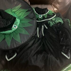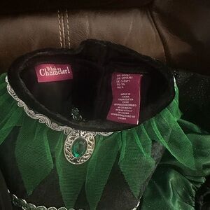 Acler kids costume with a mystical green and black theme. Ideal for Halloween fun.