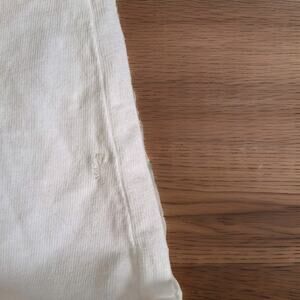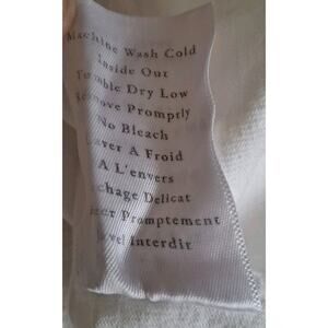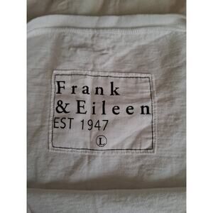 Frank & Eileen White Tee Shirt in size L is a new garment with a slight flaw . Tiny hole was mended on the left lower part of shirt. See photo # 3.