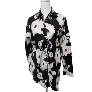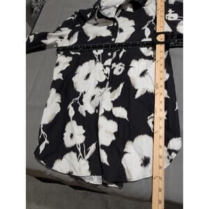 This Chico's No Iron Stretch Fairycore Floral Cotton Tunic in size XS is a versatile and stylish addition to any wardrobe. The long sleeves, collared neckline, and button closure make it suitable for various occasions, from casual outings to workwear or even business meetings. The black floral pattern adds a touch of bohemian flair, while the cotton fabric ensures comfort and breathability. With its classic fit and stretch feature, this tunic is perfect for year-round wear, making it a must-have piece for any woman looking for a chic and easy-to-care-for top.