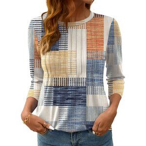 Women's 3/4 Sleeve Blouse Casual Tops Summer Shirts Pleated Hem Large
