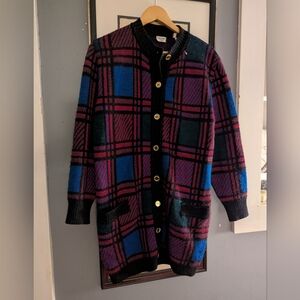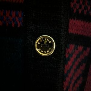 Vintage Celine Paris Plaid Long Cardigan