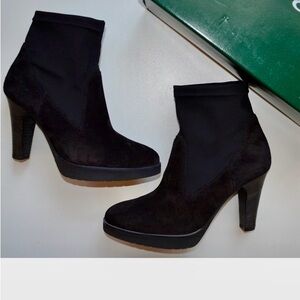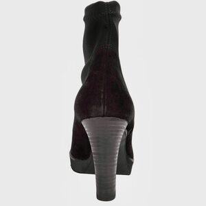 Chic black suede ankle booties. Sleek design with a comfortable heel. Ideal for versatile styling.