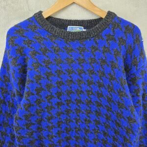 Vintage Neiman Marcus Houndstooth Wool Sweater Medium Blue Shetland Sweatshirt