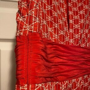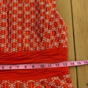 Tracy Reese Ablaze Fit & Flare Cumberbund Dress Orange Red Zipper Sleeveless 4