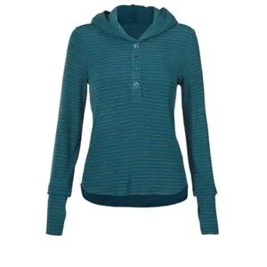 CAbi Riff Hoodie Womens L Blue Gray Striped Long Sleeve Henley Ribbed 4191