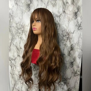 Brand new. Chesnut Brown Wavy long wig Aprox. 33 Inch long This Hair have a natural look, doesn’t look like shiny, barbie plastic hair. The photos have been taking with a light ring, so that’s basically how its going to look at the sun or any lighting exposure. Nbx