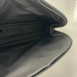 Sleek black cosmetic case by CHANEL. Perfect for stylish beauty storage.