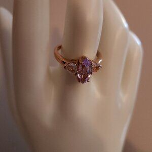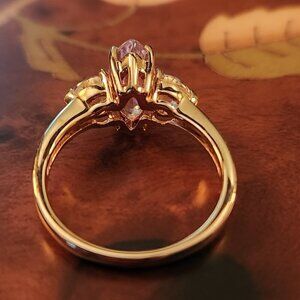 JTV ring featuring a 2.55CT marquise kunzite with 0.69CTW heart-shaped crystal quartz set in 18K rose gold over 925 silver. Size 9. Purchased from JTV in 2020. Never worn and in like-new condition, though original packaging is not included. Stamped as shown in the pictures. From a smoke-free and pet-friendly home. #kunzite #quartz #sterlingsilver #rosegold #jtv #ring #jewelry