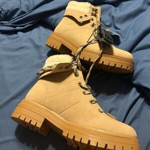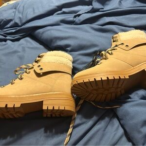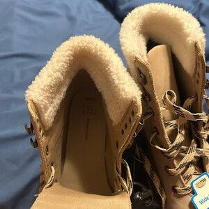 Time and Tru Camel Lace-Up Boots with Faux Fur