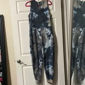 Embrace comfort and style with this chic tie-dye jumpsuit. Perfect for casual outings, it features a blend of black and gray tones for a trendy look.