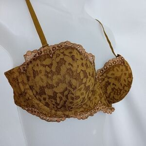 Elegant VICTORIA SECRET Barbiecore Lace Underwire Bra in Yellow Brown-(#1,436)