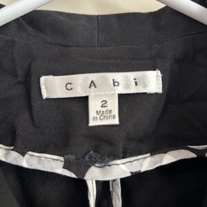 Stylish black blazer from CAbi. Features button accents and tailored fit. Ideal for professional or casual wear.
