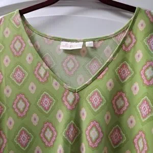 Lovely Belle by Kim Gravel blouse and tank (2 separate pieces) with lovely floral patterns. Features a stylish V-neck. Bright green and pink hues.