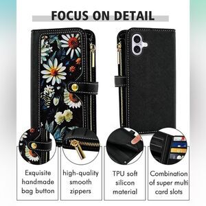 iPhone 16 6.1” Case Wallet Case Floral Wristlet Black Card Holder Phone FC2