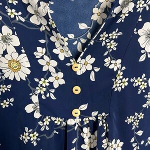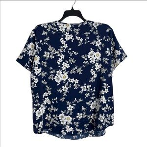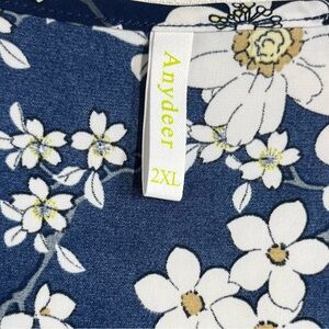 Anydeer Women's Plus Size 2XL Blue Floral Short Sleeve Summer Top Chiffon Blouse