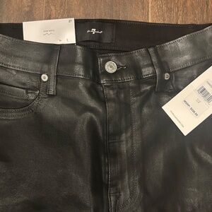 A coveted skinny jean finds sleek definition with a high-sheen coated finish reminiscent of sleek leather. A rich, black hue offers polished style to both casual and elevated looks, while easy-wearing stretch ensures all-day comfort. Faux front pockets, ankle length. Can't go wrong pairings include graphic tees, blouses, and chunky knits.
