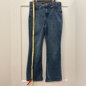 Stylish and flattering cropped bootcut jeans from Banana Republic. These feature a medium blue wash with a subtle flare at the hem — a perfect blend of classic and modern. The cropped length pairs beautifully with ankle boots, flats, or heels for a polished casual look.