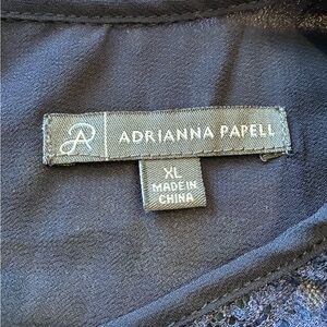 Adrianna Papell Blue and Black Floral Blouse With Black Lace Accents