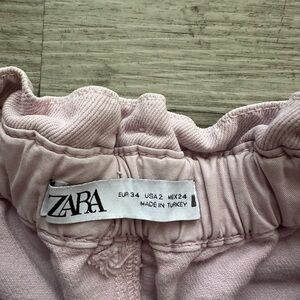 Zara paper bag Light Pink Elastic Waist Pants Sz S lightweight 2 distressed