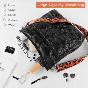 Quilted Cotton Puffer Crossbody Bag with Adjustable Strap for Women