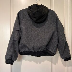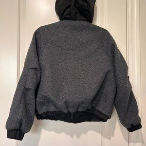 Miu Miu Cropped Charcoal Black Teddy Fleece Dual Lined Jacket