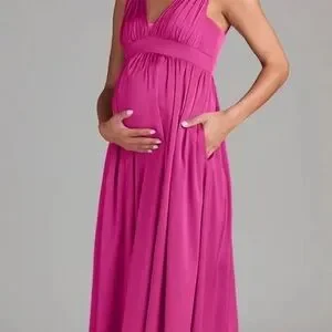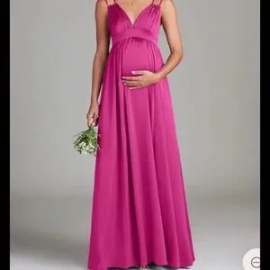 Chic fuchsia maxi dress by Azazie. Flattering empire waist. Ideal for special events.