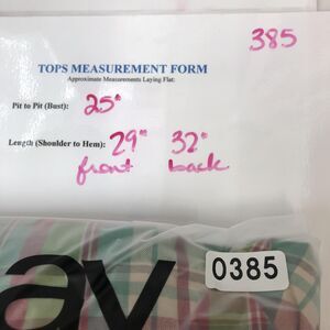 Measurements (from photo): Pit to Pit: 25"; Front Length (Shoulder to Hem): 29"; Back Length: 32"