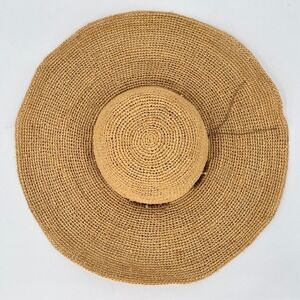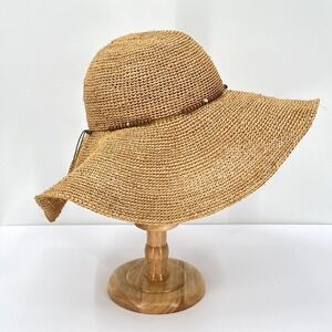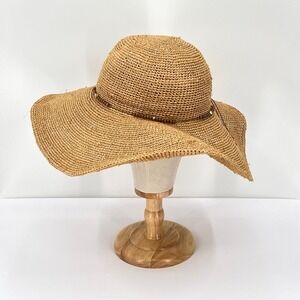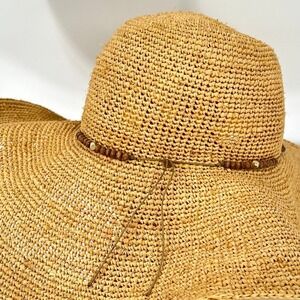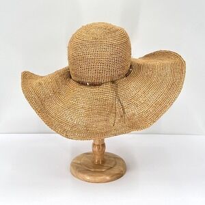 HATattack New York Straw Floppy Sun Hat Womens One Size Beaded Beach Vacation