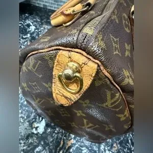 Chic Vintage Louis Vuitton Speedy 30 satchel with iconic monogram. Features sturdy tan handles. Ideal for everyday elegance. Minor signs of wear, very good pre loved condition. Includes installed unbranded d-rings.