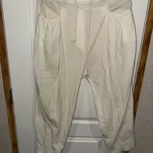 Chic white trousers with a drawstring waist. Perfect for casual outings.