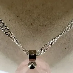 Sterling silver twisted chain. Pendant has at least one rainbow. It’s a beautiful pink color.
