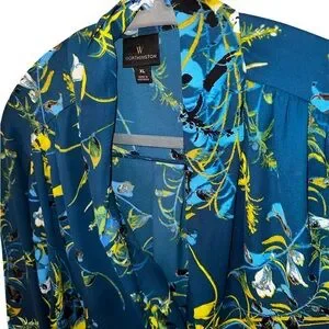 Worthington Blue and Yellow Floral Wrap Top