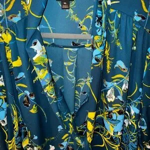 Chic, elegant & gorgeous deep teal top with long strands p-bow in vibrant floral design. Features blue and yellow hues. Ideal for stylish outings. A stunning & fashionable blouse for any occasion. Size XL EUC (worn twice; perfect condition!)